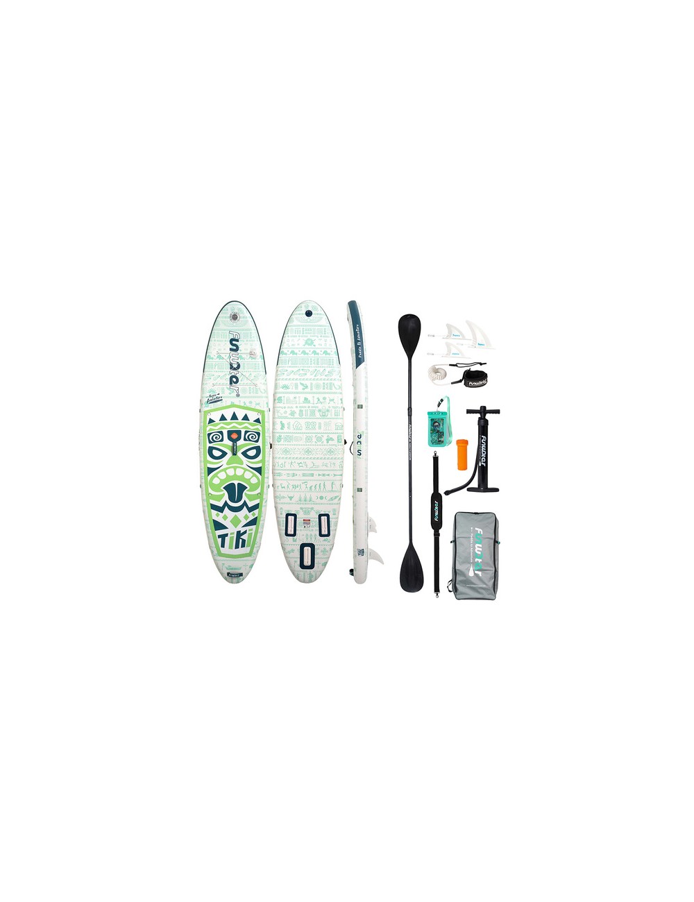 Η σανίδα SUP Funwater είναι μια ευέλικτη, φουσκωτή σανίδα που συνδυάζει σταθερότητα, άνεση και ευελιξία. Εξοπλισμένη με αφαιρούμενα πτερύγια για βελτιωμένη ευελιξία, αντιολισθητική επιφάνεια EVA και ένα σετ αξεσουάρ που περιλαμβάνεται, είναι κατάλληλη τόσο για αρχάριους όσο και για πιο έμπειρους χρήστες. Αυτό το μοντέλο είναι κατάλληλο για λίμνες, ποτάμια και θάλασσα.
