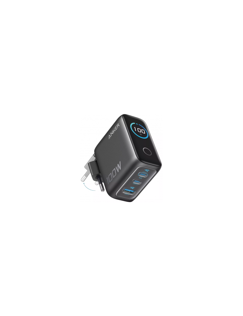 Ο Anker Charger (100W, 3 Ports, Smart Display) A121B είναι ένας ultra-compact φορτιστής τοίχου GaN με μέγιστη ισχύ 100W, δυναμική οθόνη Smart Display πραγματικού χρόνου, 2 θύρες USB-C (100W η κάθε μία) + 1 θύρα USB-A (33W), αναδιπλούμενο βύσμα και τεχνολογία ActiveShield 4.0. Φορτίζει ταυτόχρονα έως 3 συσκευές με έξυπνη κατανομή ισχύος — από MacBook και laptop μέχρι iPhone, tablet και ακουστικά. Με μέγεθος 30% μικρότερο και ελαφρύτερο από τους ανταγωνιστές και περιλαμβανόμενο καλώδιο USB-C, αντικαθιστά ογκώδεις laptop chargers σε μία φορητή συσκευή.
